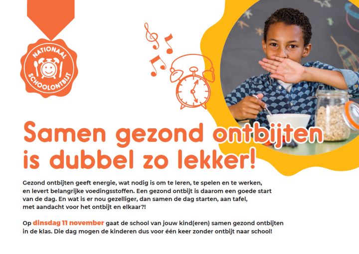 Leren én ervaren, dat kan met het Nationaal Schoolontbijt. Het (gratis) lespakket Ontbijt aan de Basis biedt online modules over ontbijten volgens de Schijf van Vijf. Een gezond ontbijt ervaren kan tijdens de 23e editie van de ontbijtweek in november.